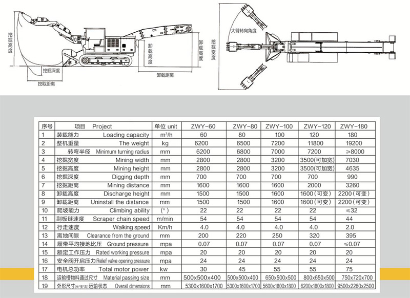 配備三節臂(帶破碎錘)后,可適用于煤巷掘進、煤巷開口、半煤巖巷掘進快速出渣,三節臂裝載機能彌補標準的兩節臂裝載機工作不到的死角,增加工作范圍。
